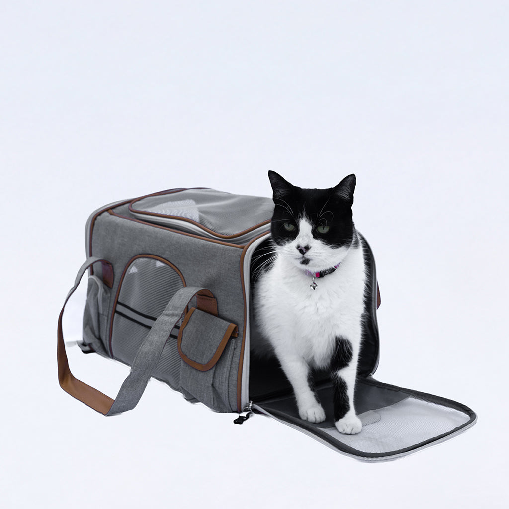 "The Love Pet Travel Carrier has been a lifesaver! Bella feels so cozy and safe on every trip, and I love how it folds up for easy storage."